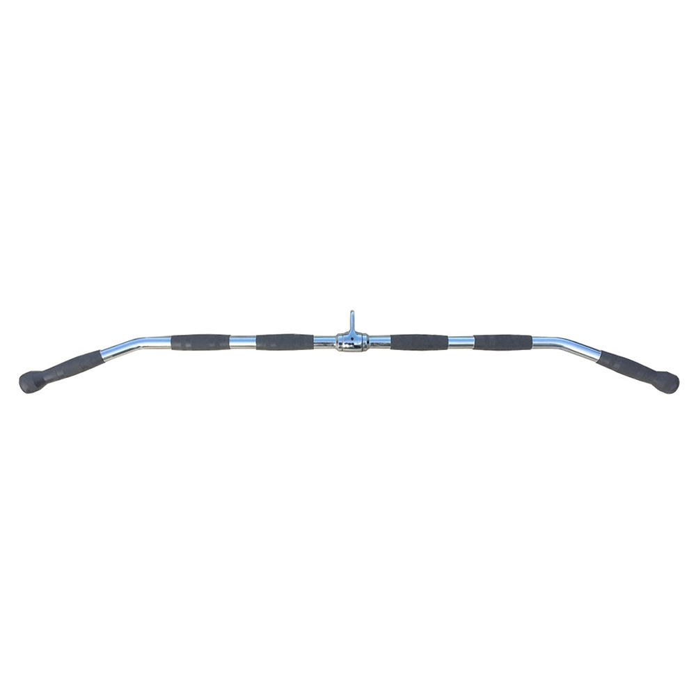 - Надежный профессиональный гриф для тяги сверху широким хватом.