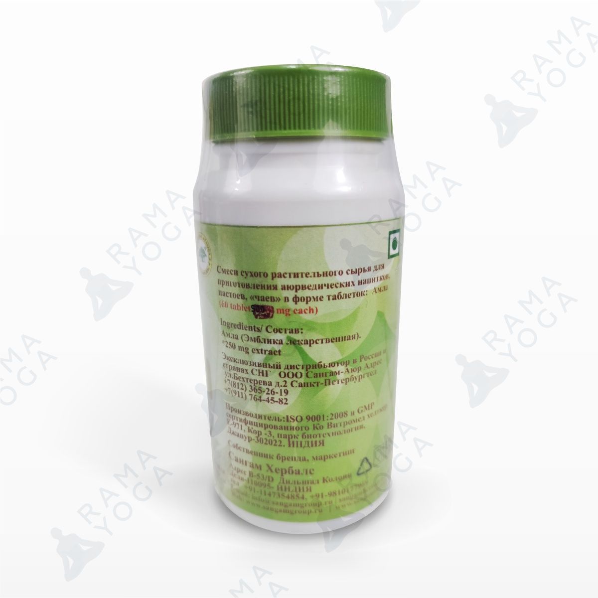 1 таблетка 900 мг содержит: Амла (Emblica officinalis) порошок плодов, Амла (Emblica officinalis) 250 mg экстракт.Отказ от ответственности
