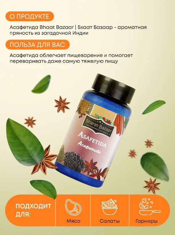 Асафетида широко используется для ароматизации карри, соусов и маринадов.Также используется в медицине, потому что имеет свойства антибиотика. Асафетида всегда должна проходить тепловую обработку, обжарку. Популярна во времена Римской империи и в настоящее время широко используется во всех региональных кухнях Индии.Производится в основном в Индии и Иране.