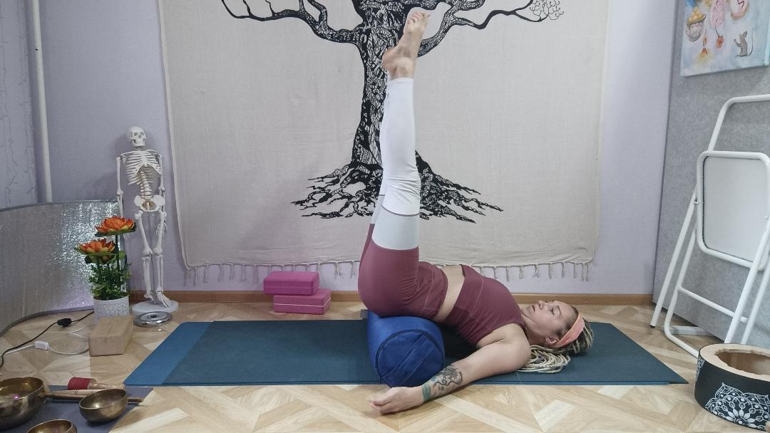 Можно выполнять упражнения с наклоном вперед, в этом случае болстер будет служить опорой там, где вашему телу не хватает растяжки, а вы сможете расслабить мышцы. Но популярнее всего прогибы на болстере, когда вы располагаете болстер под спиной, оставляя тазовую область на полу - образуется нужное вытяжение мышц в пояснице. Мы рекомендуем также использовать утяжелители или мешки с песком, которые кладут на плечи с целью выпрямления осанки.