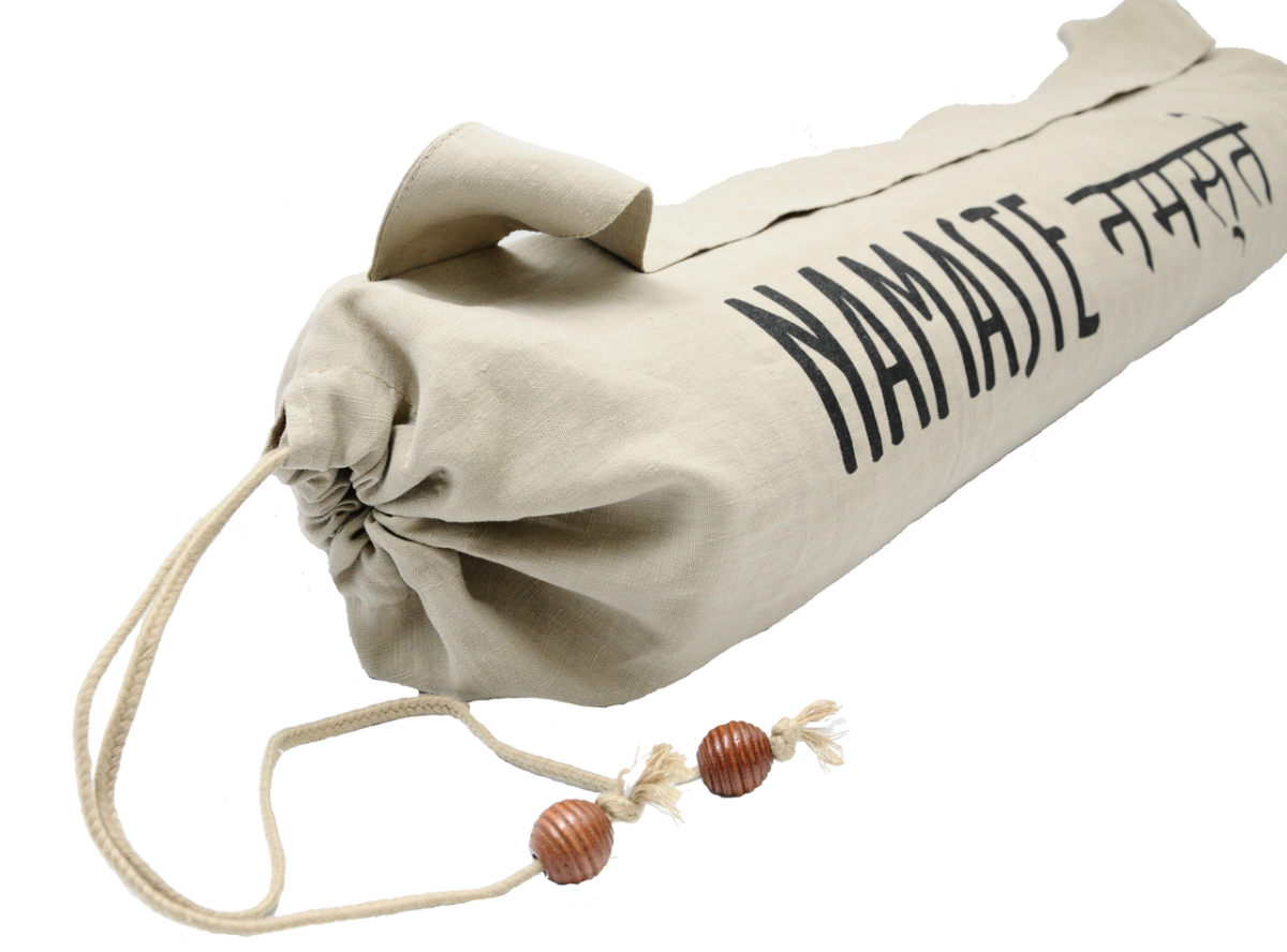 Чехол для коврика для йоги ручной работы с надписью Намасте на английском языке и на санскрите. Лаконичный дизайн. Данный чехол изготовлен из натуральных материалов - лен, деревянные бусины.