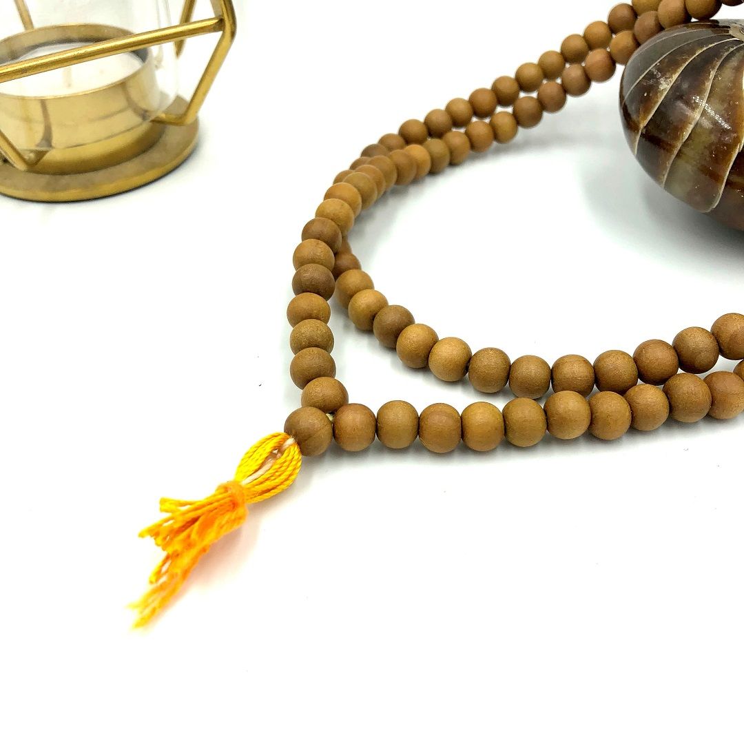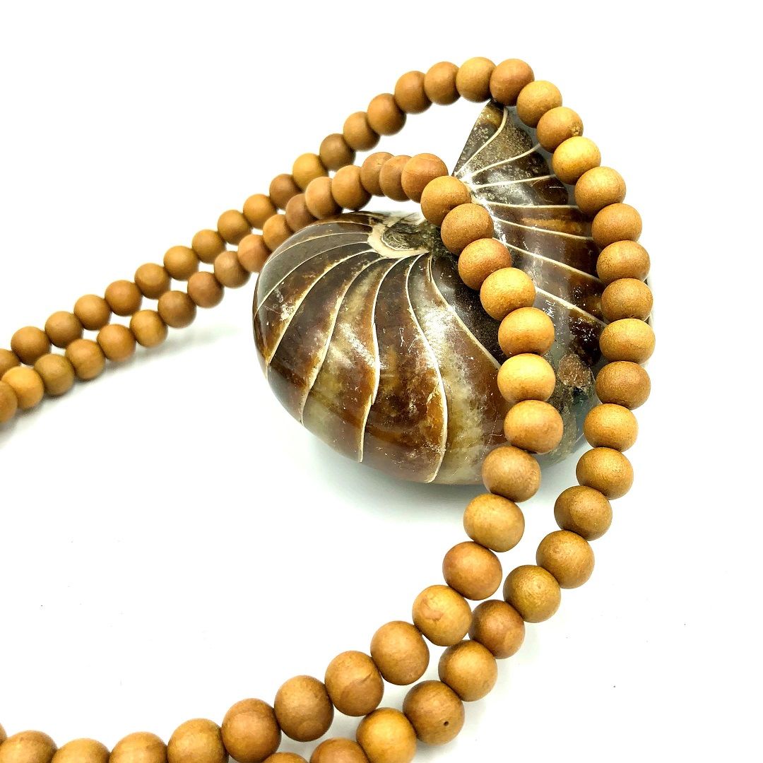Древесина сандала тактильно тепла и приятна, ее можно промаслить маслом сандала для ароматерапевтического эффекта и придания бусинам оттенка.