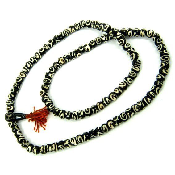 Чётки ручной работы выполнены из натуральной кости. Красивые чётки на вид напоминают бусы и сделаны таким образом, чтобы их было удобно перебирать в руках. Каждая бусина украшена рисунком. Чаще всего приобретают переборные чётки для успокоения нервной системы, чтобы отвлечься или сосредоточиться. Плюс выбирают их и как аксессуар на подарок, приносящий удачу своему обладателю.