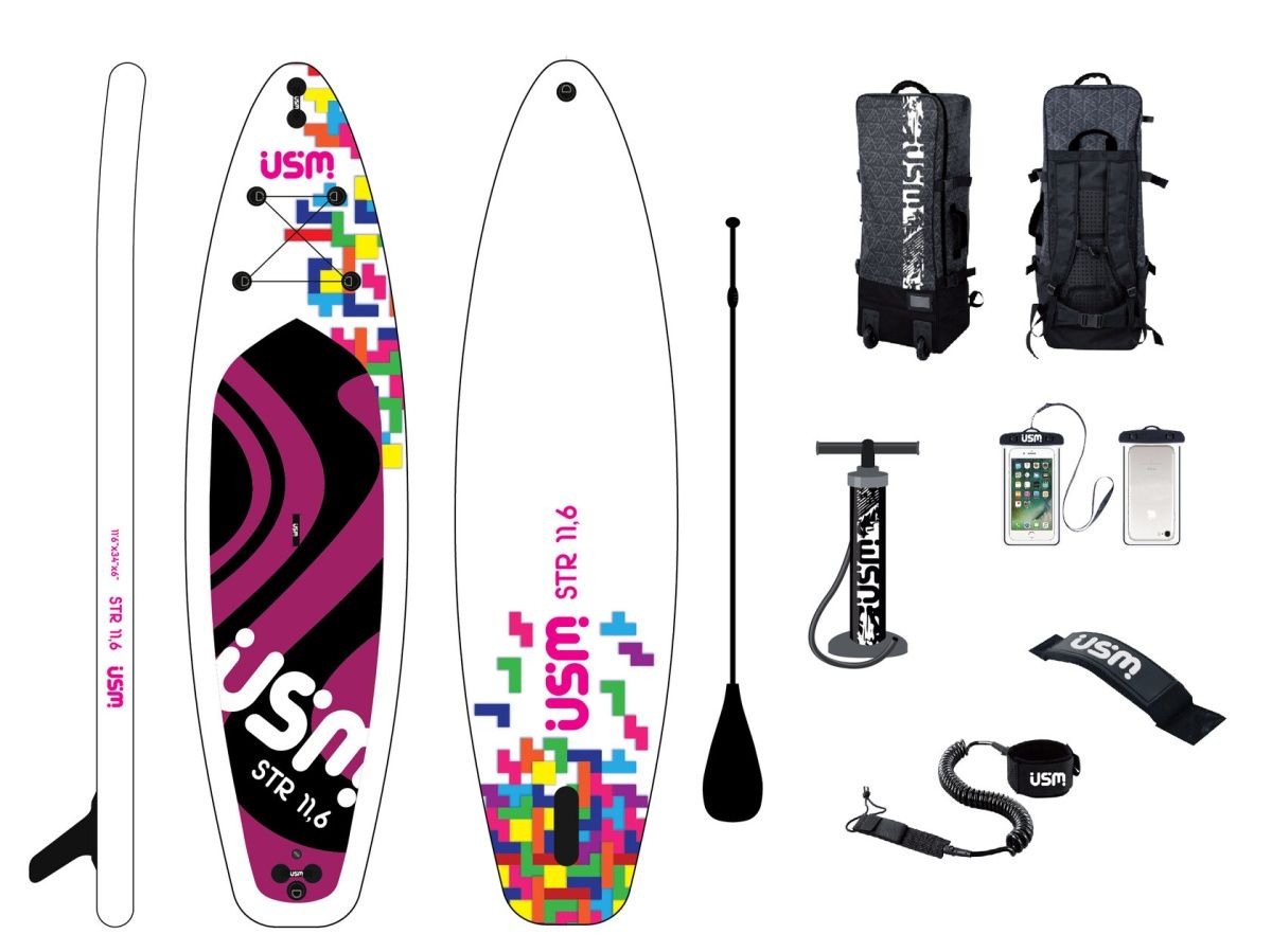 Комплектация: весло алюминиевое, лиш, насос двухклапанный, плавник, ремнабор, гермочехол для телефона, сумка для хранения