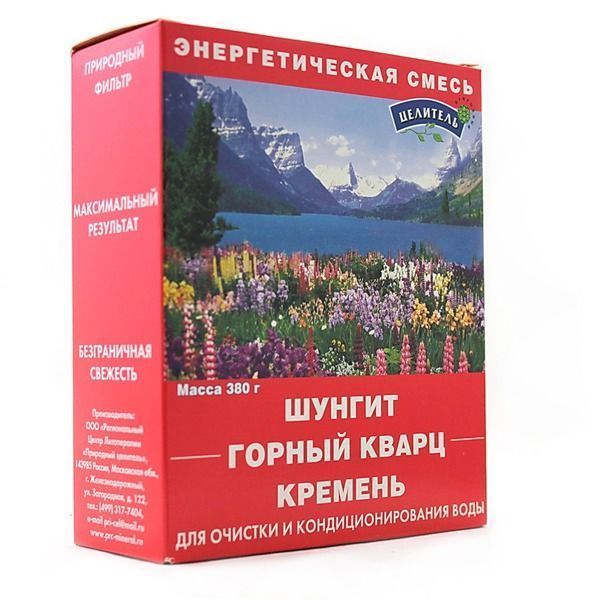 Энергетическая смесь для очистки и кондиционирования воды "Целитель", в состав которой входят шунгит, горный кварц и кремень, сделает вашу воду свободной от радиоактивных отходов, хлора, паразитов и патогенных бактерий, ржавчины, пестицидов, нитратов и других вредных примесей. В результате употребления очищенной с помощью этой смеси воды у вас улучшится работа желудочно-кишечного тракта, нормализуется обмен веществ, поднимется иммунитет, а ваш организм легко и спокойно будет избавляться от шлаков и токсинов.