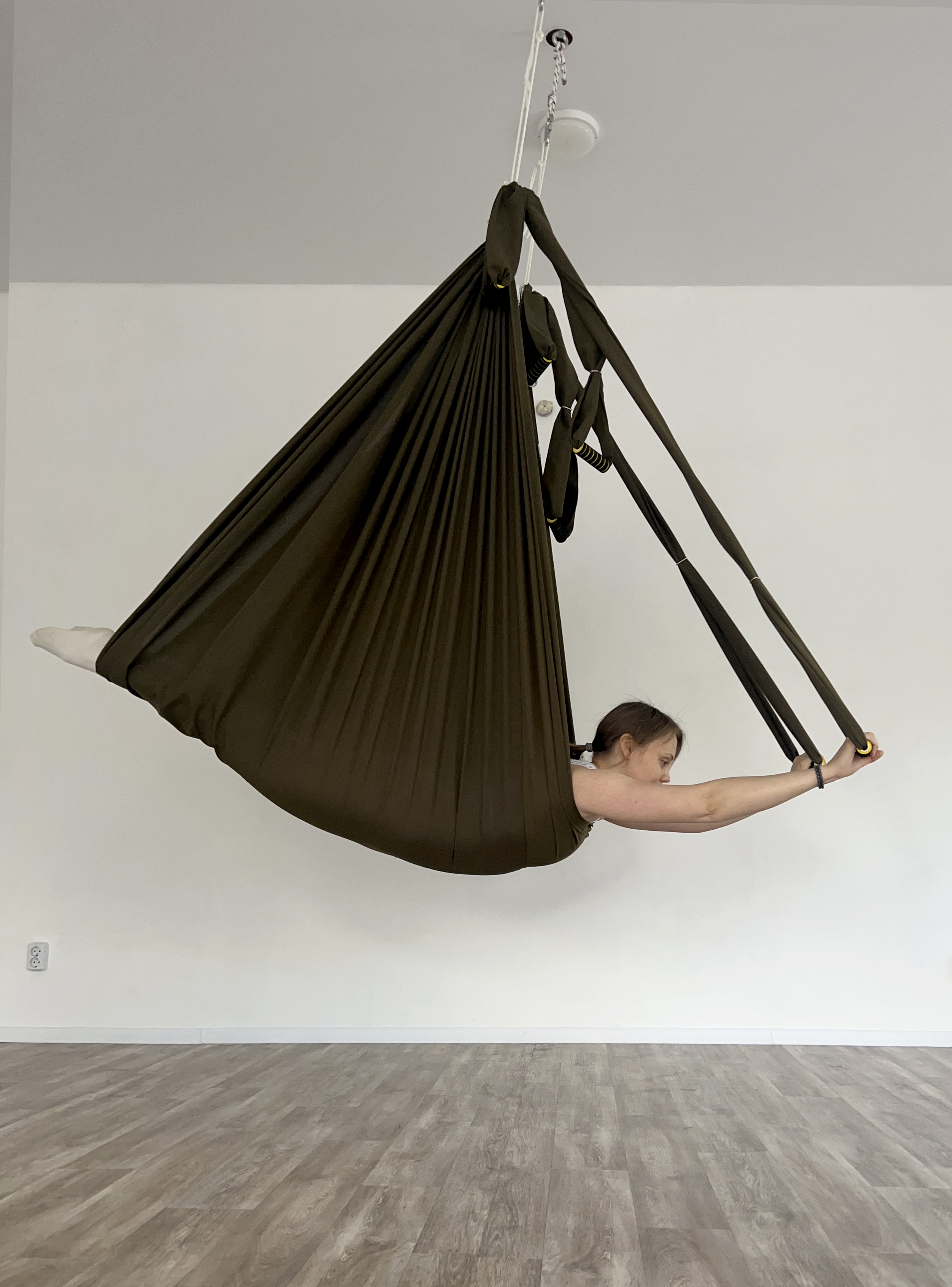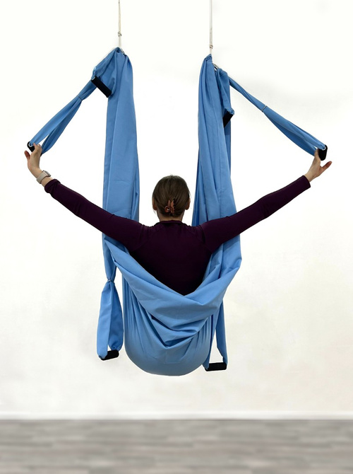 Гамак с ручками позволит разнообразить практику, добавить новые интересные упражнения или упростить выполнение сложных элементов.