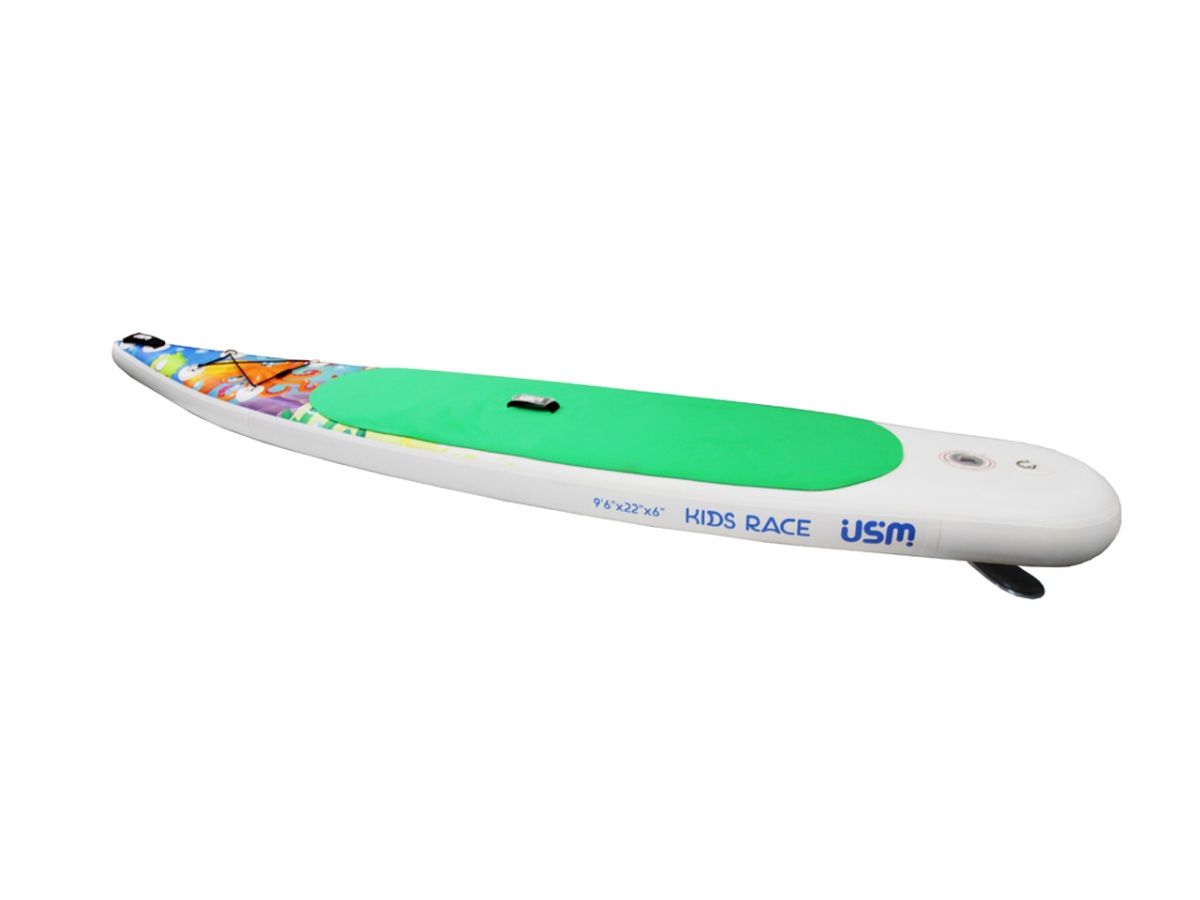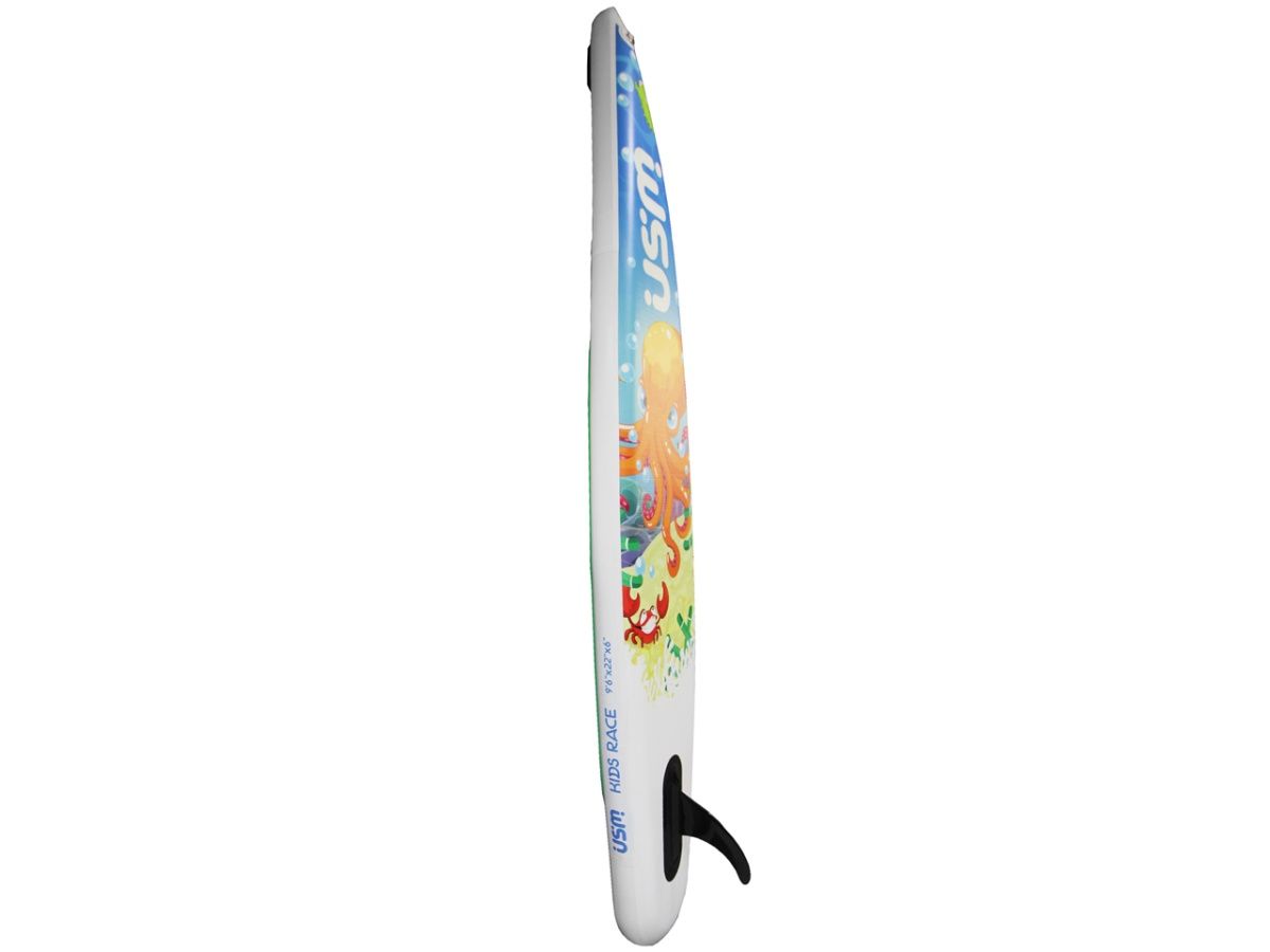 Ваш малыш будет чувствовать себя настоящим гонщиком, преодолевая различные препятствия и скоростные испытания. Выраженный носовой рокер детской гоночной надувной доски облегчает управляемость и поможет пройти самые сложные участки и повороты гоночной детской трассы. Гоночный сап борд Race оборудована одиночным ромбовидным плавником закрепленным на площадке для плавника SUP доски система крепления US Box, что обеспечивает хорошую курсовую устойчивость сап-доски, стабильность и минимальное сопротивление, что особенно важно при преодолении больших расстояний по плоской воде.