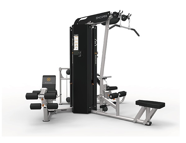 - 5 тренажеров в одном: тяга сверху, гребная тяга, сгибание и разгибание ног, многопозиционный жим от груди и плеч.