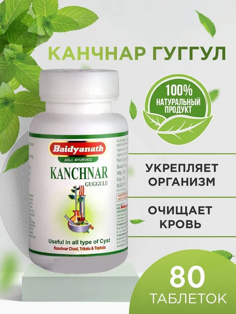 Канчнар гуггул – лучший аюрведический препарат при различных нарушениях работы лимфатической системы, а так же от варикоза и геморроя. Совместно с Дашмула применяется для лечения кистозных образований яичников, фиброзно-кистозной мастопатии, заболеваний щитовидной железы (шейный лимфаденит), туберкулёзного лимфаденита, пневмонии, доброкачественных опухолей, различных видов грыж и профилактике онкологических заболеваний. Также, канчнар гуггул эффективно помогает при варикозном расширении вен и тромбофлебите, при ангинах, фурункулах и других кожных заболеваниях, способствует похудению.