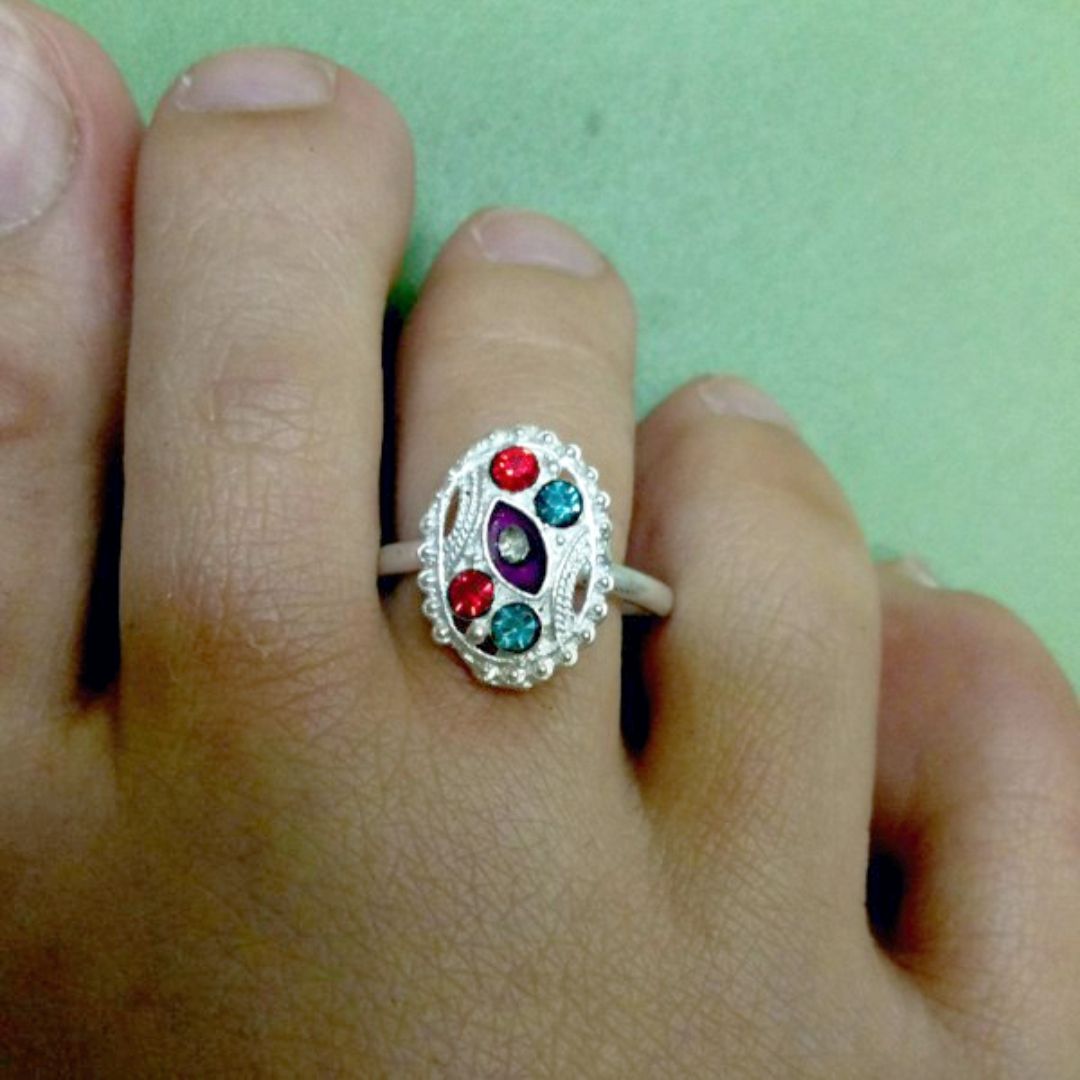 Яркое кольцо на палец ноги в индийском стиле с яркими камушками и вставками прекрасно смотрится на ножке. Побалуйте и вы себя!