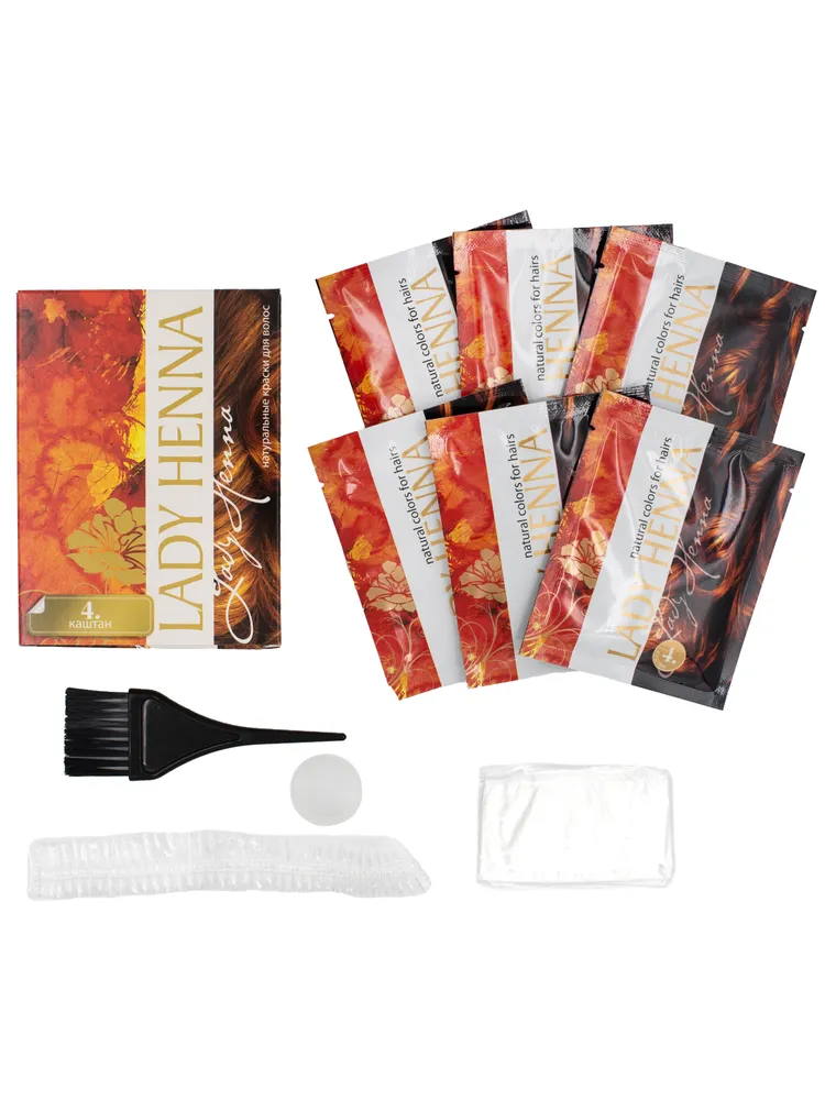 Эта замечательная краска для волос Леди Хенна является натуральным продуктом, который не портит волосы. Натуральная краска для волос подарит вашим волосам силу, блеск и здоровье, и насыщенный цвет спелого каштана.
