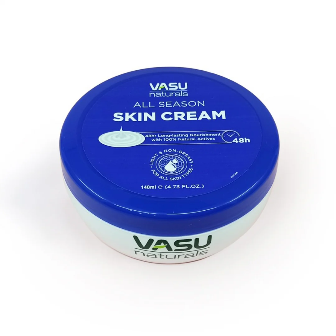 ALL SEASON Skin Cream, Vasu, обогащенный 100% натуральными активными веществами , идеально подходит для того, чтобы Ваша кожа оставалась увлажненной и свежей в течение длительного времени. Этот легкий и нежирный крем для кожи обеспечивает интенсивное увлажнение на 48 часов и длительное облегчение сухой и зудящей кожи в любое время года.