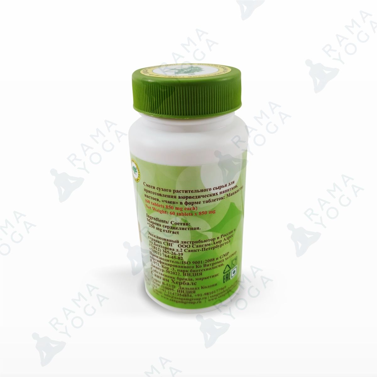 1 таблетка 850 мг содержит: Экстракт Марены сердцелистной (Rubia cordifolia) — 250 мг, порошок Марены сердцелистной (Rubia cordifolia) — в достаточном количестве.