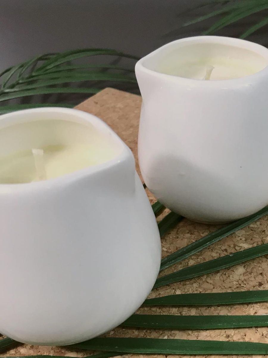 Состав массажной свечи: масло какао, масло жожоба, масло оливы холодного отжима, масло кокоса, масло миндаля, масло виноградных косточек, эфирные масла лимона и иланг-иланга.