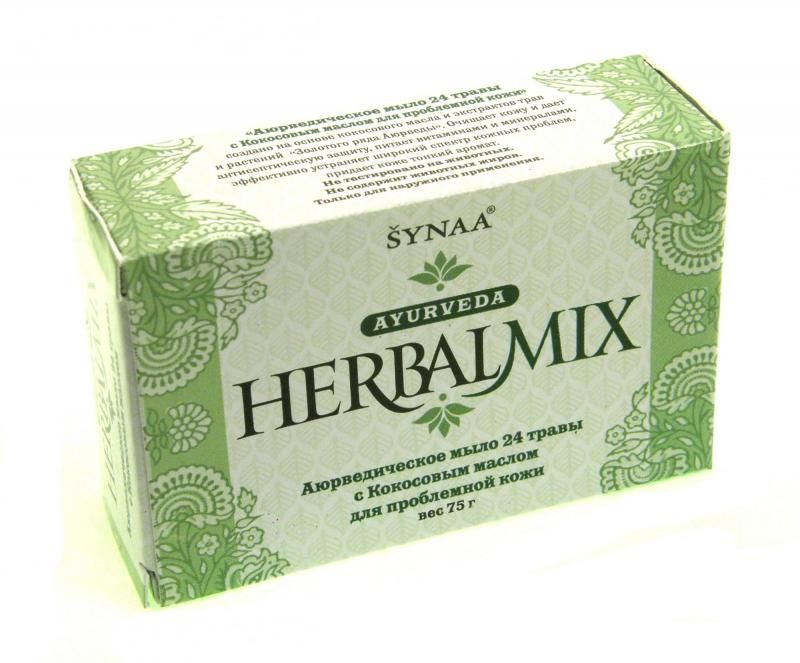 Мыло 24 травы с добавлением кокосового масла состоит из натуральных компонентов, подходит для проблемной кожи. Необычная композиция чудотворных трав, которые входят в Золотой ряд Аюрведы, прекрасно очищает кожу, избавляет ее от воспалений, успокаивает, заживляет.