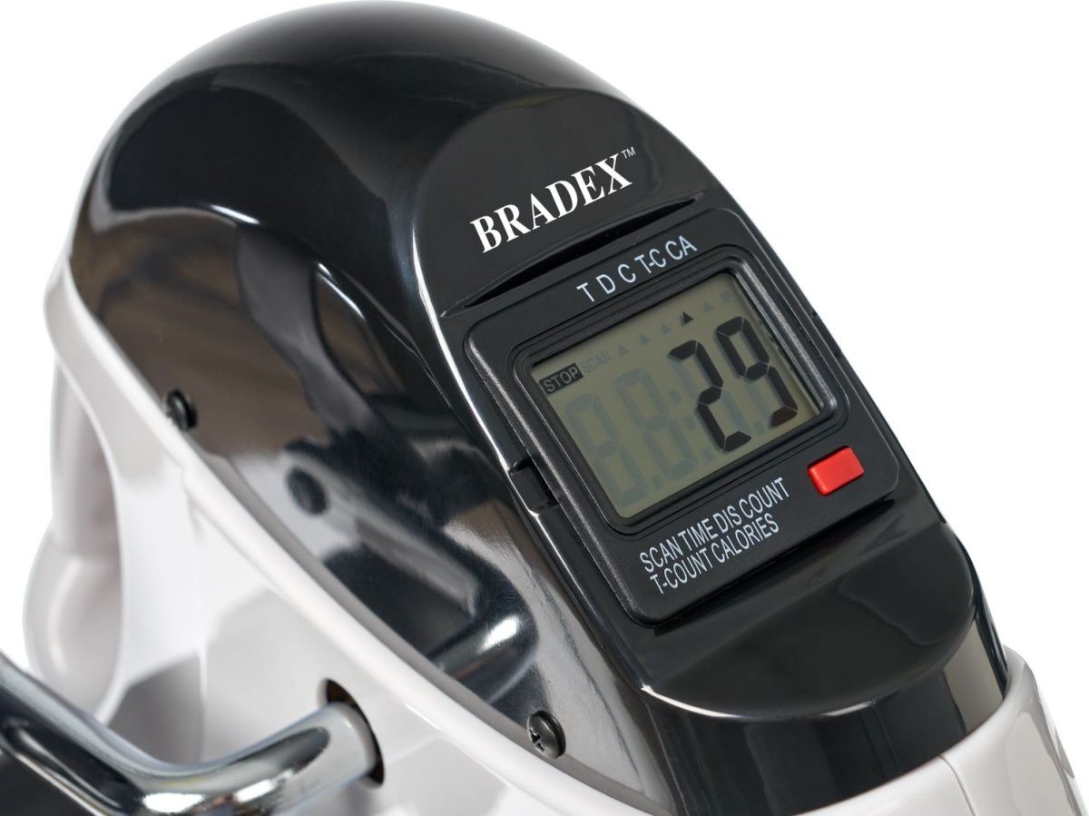 Мини велотренажёр Bradex SF 0826 — один из самых компактных и простых домашних тренажеров. В отличие от обычных велотренажёров у него нет стойки с сиденьем, поэтому его можно установить там, где вам удобно, расположиться относительно него под любым углом и на любой высоте. Можно тренироваться, даже сидя в любимом кресле перед телевизором или прямо на рабочем месте. Его легко переносить, так как он весит меньше 4 кг и имеет удобную пластиковую ручку. Размеры Bradex SF 0826 составляют не более 35 см в высоту и 45 см в длину, поэтому его можно установить в любой квартире и не нужно искать специальное место для хранения. Тренажер не требует подключения к сети и работает от обычной батарейки типа ААА .