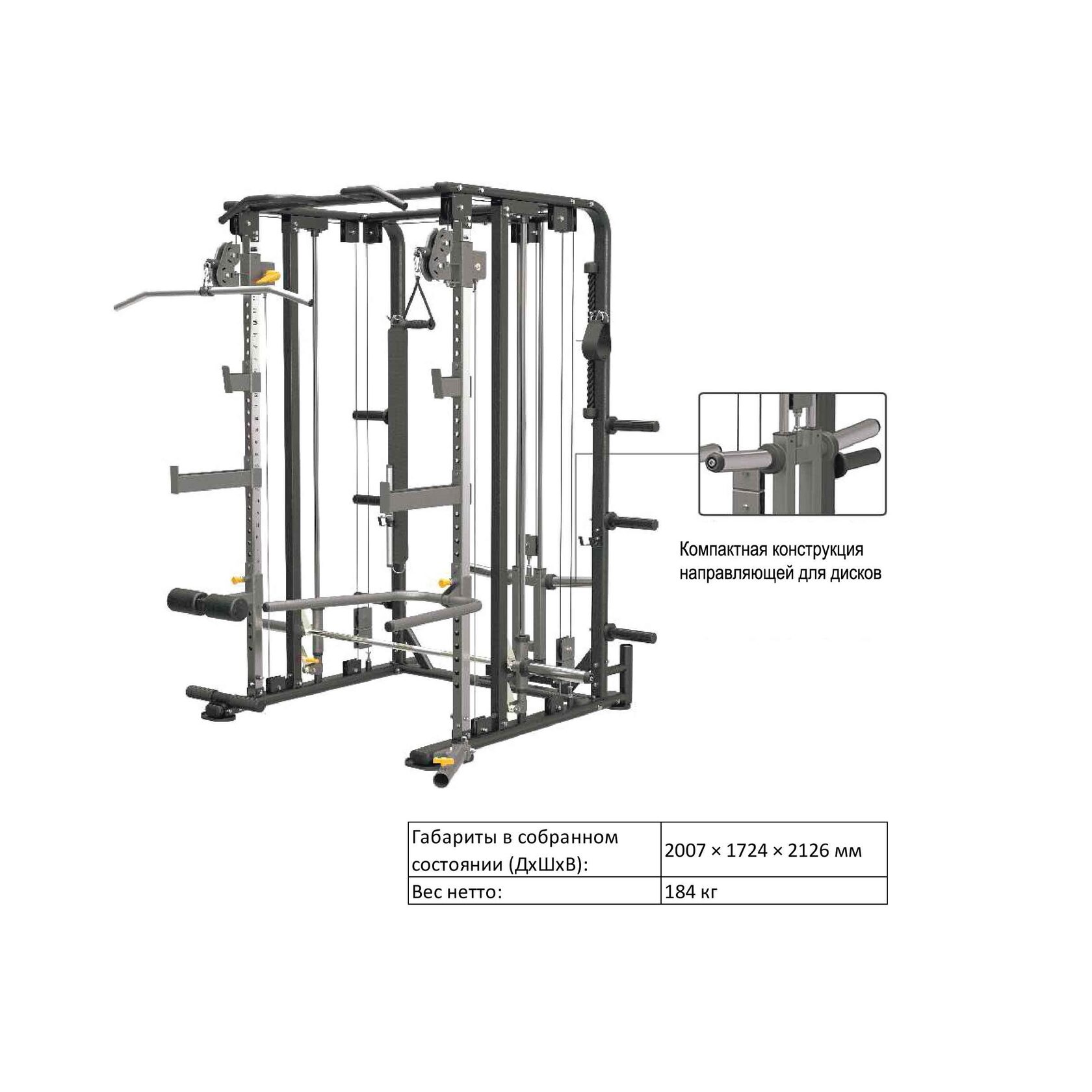 - Двойная регулируемая тяга «угловой» или «компактный кроссовер» - безграничный набор упражнений на все группы мышц, функциональный тренинг;