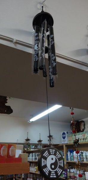 Музыка ветра чёрного цвета «инь-янь» из шести трубочек. Восточный аксессуар отлично гармонизирует пространство, помогает наладить взаимоотношения с близкими и коллегами в случае, если талисман находится на работе. Благодаря тому, что оберег с особой символикой, музыка ветра помогает своим обладателям становиться привлекательным для противоположного пола, усиливает чувства влюблённых, создаёт особую атмосферу в отношениях.