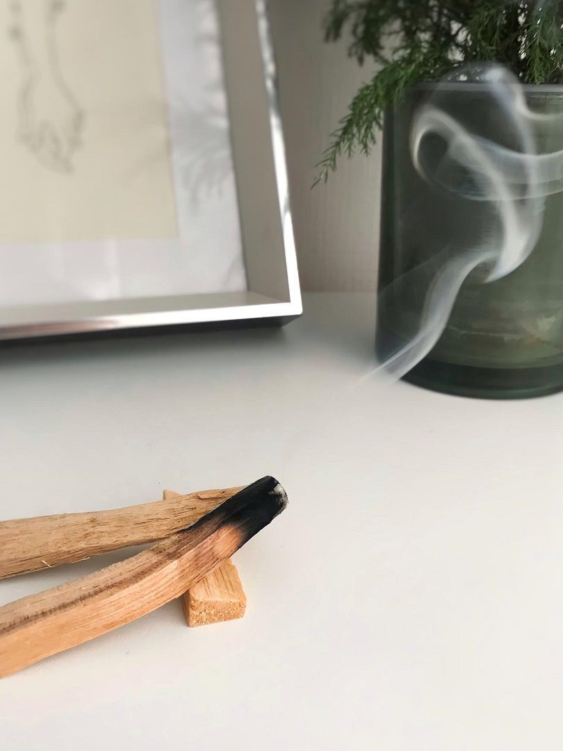 Как использовать: Пало Санто - это натуральное дерево. Подожгите один из концов ветви от свечи и дайте огню разгореться, немного подождите и затушите огонь. Пройдитесь по помещению с тлеющим Пало Санто, окружите себя дымом. Либо просто положите тлеющую частицу Пало Санто на керамическую поверхность или подставку для благовоний.