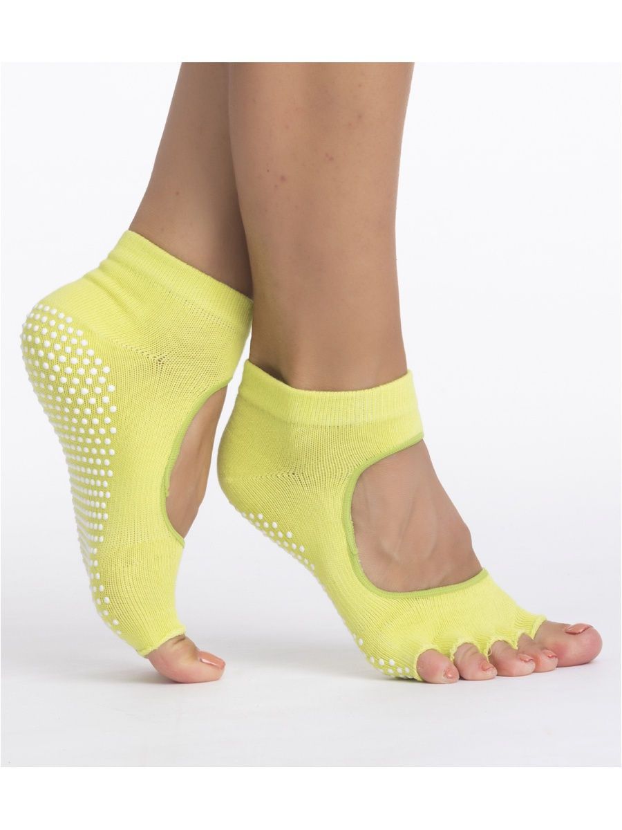 C помощью носков противоскользящих для занятий йогой Вы сможете выполнять любые упражнения из йоги или пилатеса без использования специального коврика. Противоскользящие накладки из ПВХ дают большее сцепление с поверхностью, что усиливает баланс и устойчивость поз. А дизайн носков с разделёнными пальчиками позволяет Вам полностью чувствовать стопу и каждый палец на ноге, что необходимо для правильного выполнения некоторых поз, направленных на тренировку и растяжку ног и стопы.