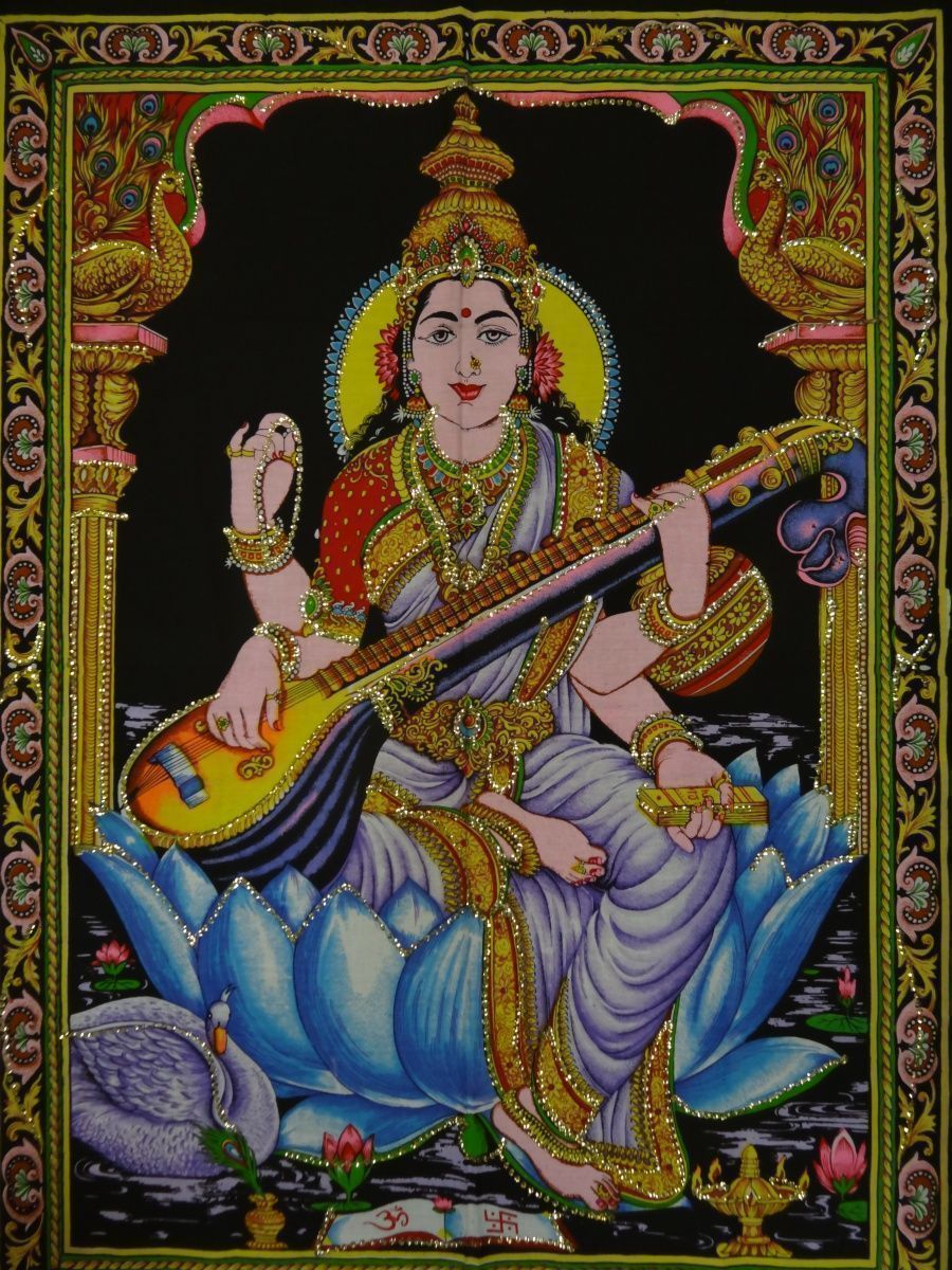 Панно тканевое «Сарасвати на голубом лотосе» выполнено из хлопка и украшено росписью в технике батик. Оно станет прекрасным элементом декора для вашего интерьера и принесёт гармонию и умиротворение в ваш дом.