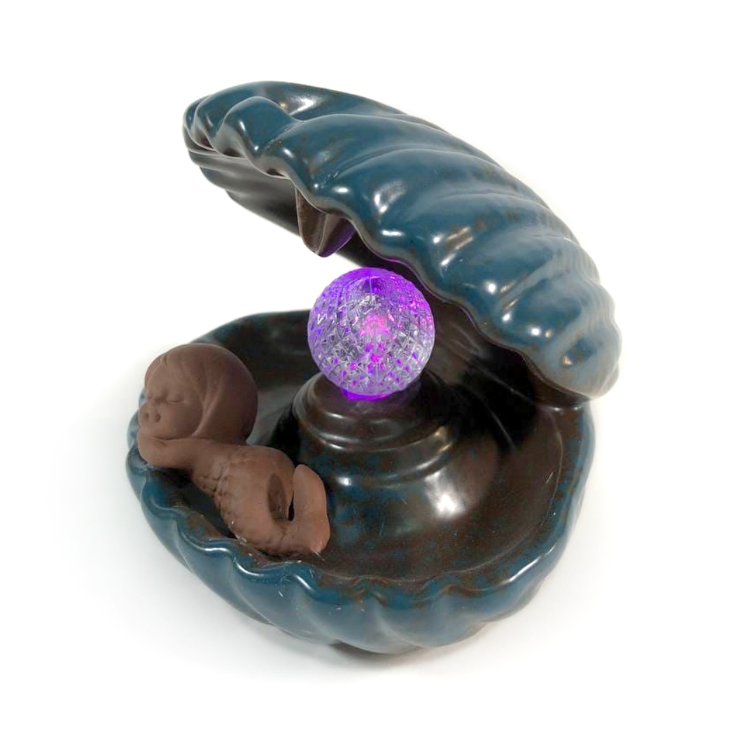 Удивительно изящная подставка для стелющихся благовоний изготовлена из обливной керамики, она станет прекрасным украшением интерьера. Ниспадающий тихим водопадом дым выглядит просто потрясающе и контрастирует с блестящей тёмной глазурью. Эта подставка предназначена специально для использования с благовониями-конусами, дым от которых не поднимается естественным образом, а стелется по поверхности, стекает и клубится. Вытекая из отверстий в подставке, дым создает изумительный, совершенно волшебный эффект дымного водопада.