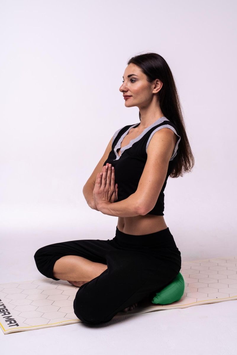 Подушка для йоги с гречишной лузгой в форме полумесяца - это бюджетный вариант полезного для здоровья йога-пропса, который может быть использован и в повседневной жизни.