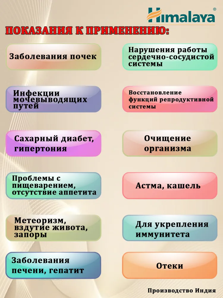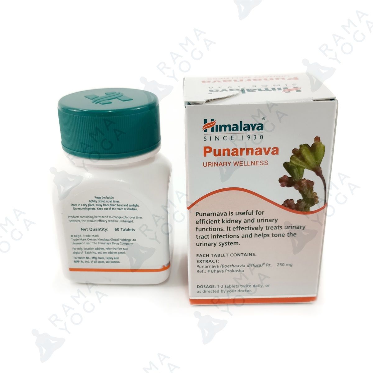 Пунарнава от компании Гималаи успешно помогает в детоксикации и нормализации функций печени после применения медицинских препаратов или при отравлении алкоголем. Применяется при циррозе печени и желтухе. Чрезвычайно полезен приём Пунарнава при отеках, поскольку нормализует функции почек. Используется в сочетании с другими средствами для выведения камней из почек. Также применяется при пиелонефрите.