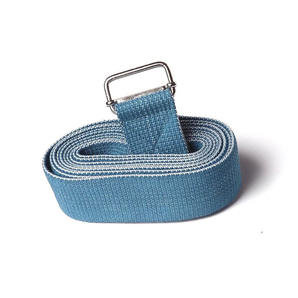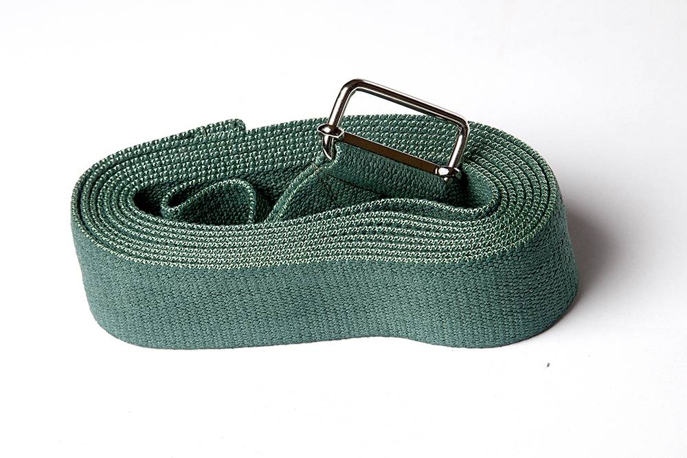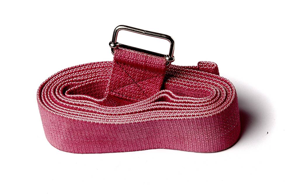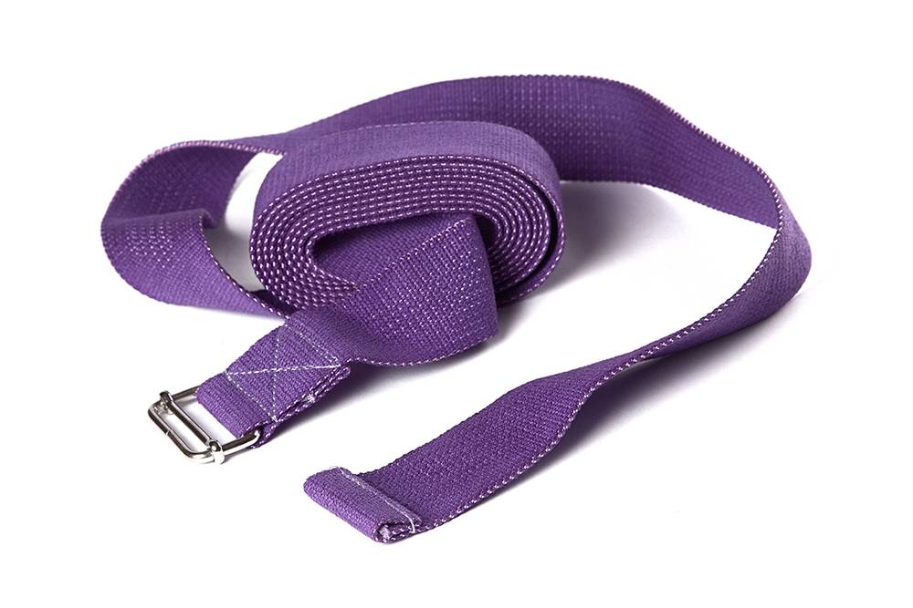 Ремень для йоги изготовлен из плотной хлопковой стропы молочного цвета, далее он проходит окраску на производстве (просим учитывать возможность неравномерного окрашивания стропы) в различные оттенки.