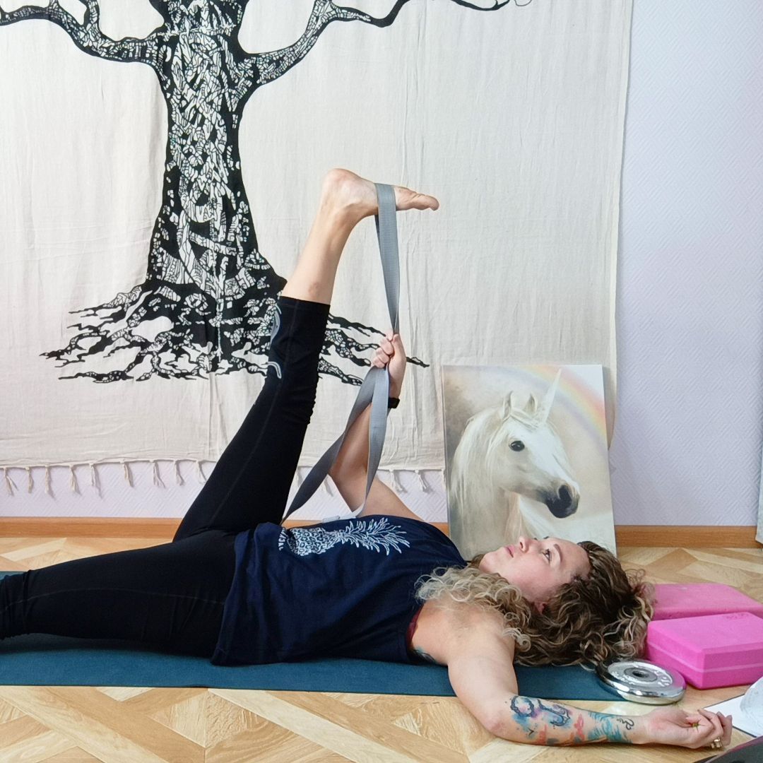 Ремень для йоги можно использовать самостоятельно дома, если вы занимаетесь фитнесом и растяжкой - это очень удобное, а главное - бюджетное приспособление!