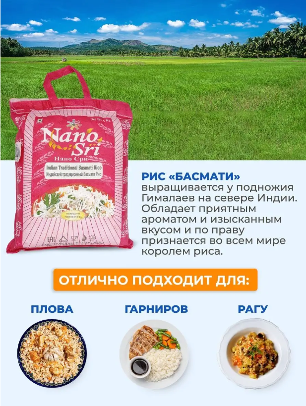 Рис сорта басмати - богатый источник углеводов, в нем его содержится больше, чем в прочих сортах риса. Из-за подобной концентрации углеводов потребление риса басмати может повышать уровень сахара в крови, из-за чего диабетикам рекомендуется соблюдать умеренность в потреблении риса этого сорта (норма - около 45-60 г на порцию). В качестве гарнира рис басмати хорошо подавать с рыбой, сезонными овощами, индейкой и постным мясом.