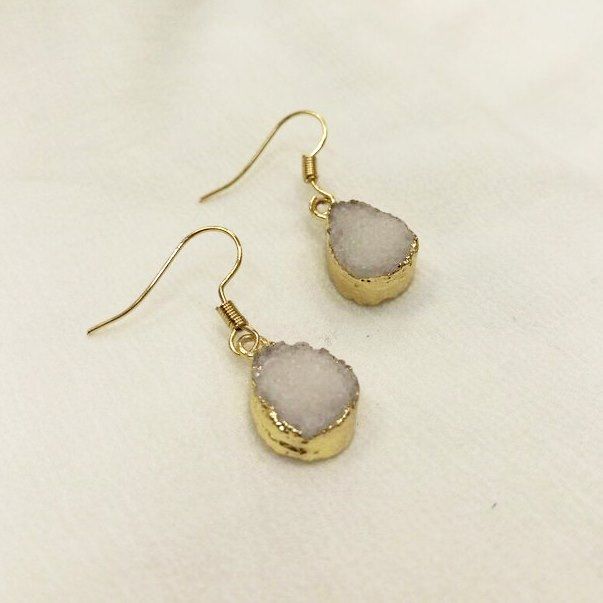 Серьги агат белоснежный друза капелька миниатюрные позолота 3 см