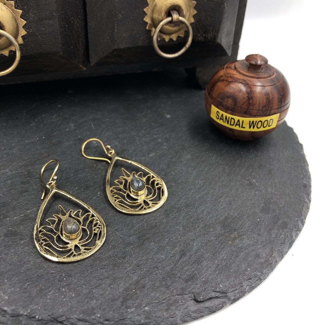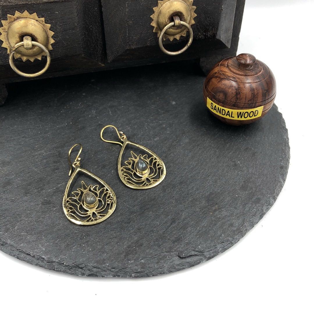 Серьги из латуни со вставкой Лабрадорита - это красивый аксессуар и мощный защитник.