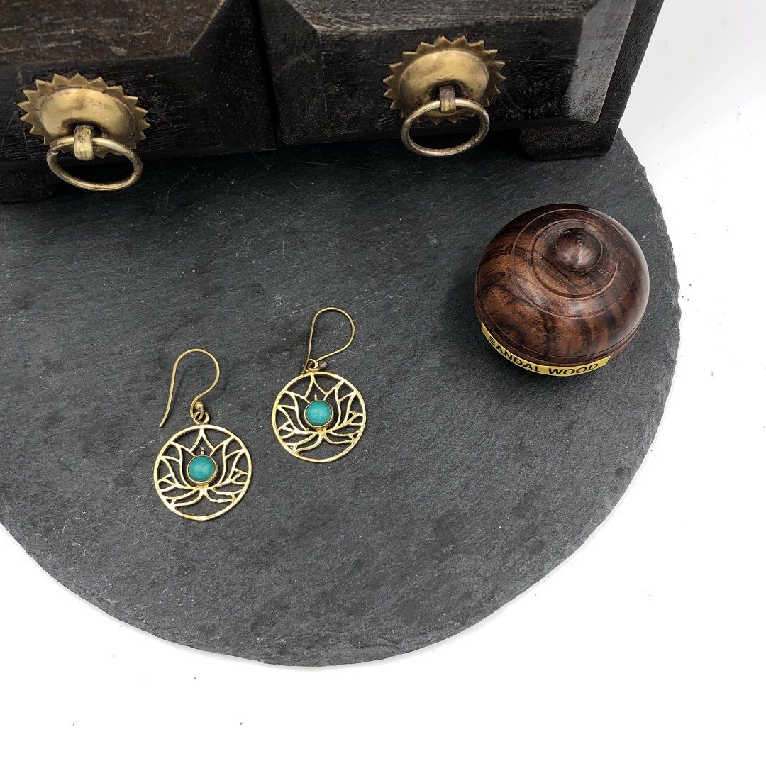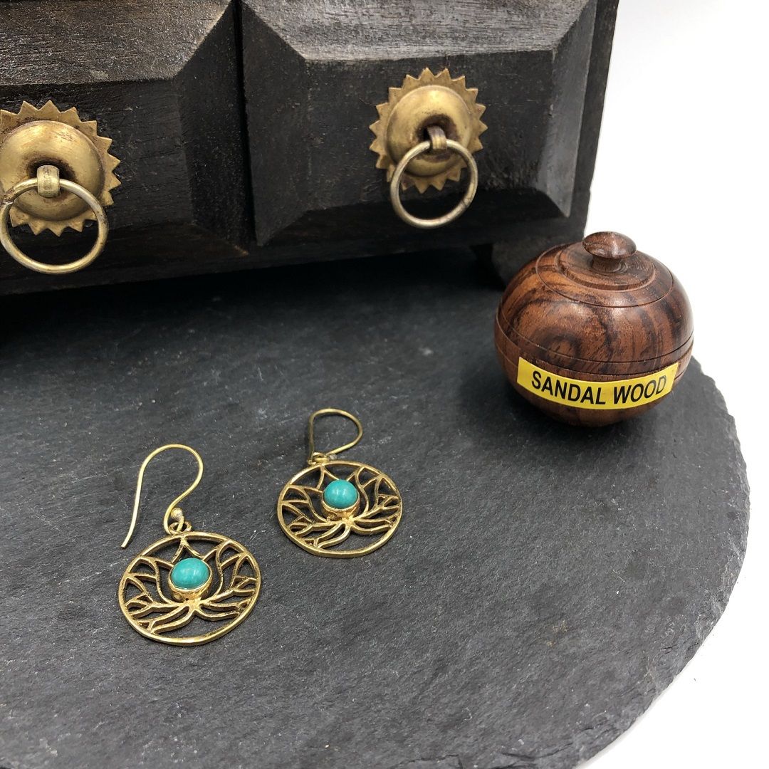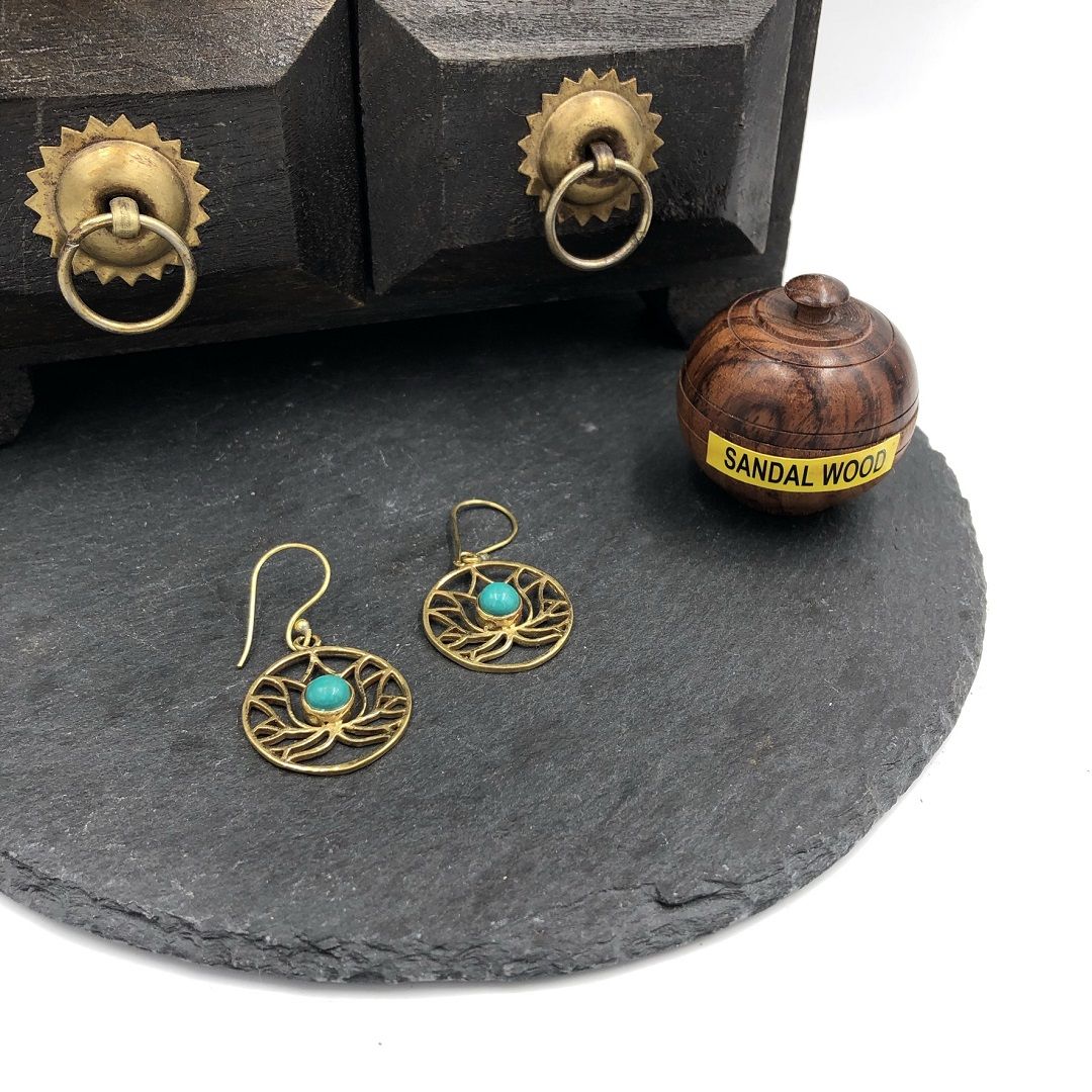 Серьги из латуни со вставкой Бирюзы - это красивый аксессуар и мощный защитник.