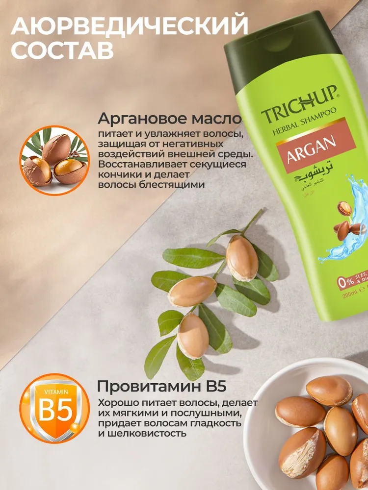 Шампунь Trichup Argan Shampoo с Аргановым маслом компании Vasu хорошо очищает и питает волосы и кожу головы, прекрасно пенится, подходит для волос любого типа. Он содержит аргановое масло, поэтому эффективно снимает раздражения кожи головы, устраняет перхоть. Шампунь прекрасно сказывается на состоянии волос: он усиливает их эластичность, разглаживает, придает блеск и упругость, оживляет. Ломкость волос постепенно уходит, восстанавливается их мягкость.