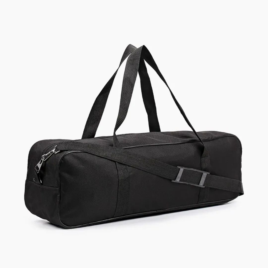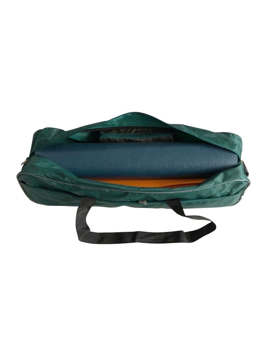 Сумка Деви классического черного цвета выполнена из плотного непромокаемого материала, форма поддерживается благодаря упругим кантам по контурам, дно сумки уплотнено специальной прослойкой, продольная молния позволяет легко и быстро собрать все необходимое оборудование для тренировки. Так же она оснащена удобными ручками и плечевым ремнём, внутри есть небольшой кармашек для мелочей. Сумка легко стирается в машинке или протирается с помощью влажной тряпочки. Очень вместительная сумка, разработанная специально для путешествующих йогов, которые предпочитают, чтобы все нужные вещи для практики помещались в одной сумке.