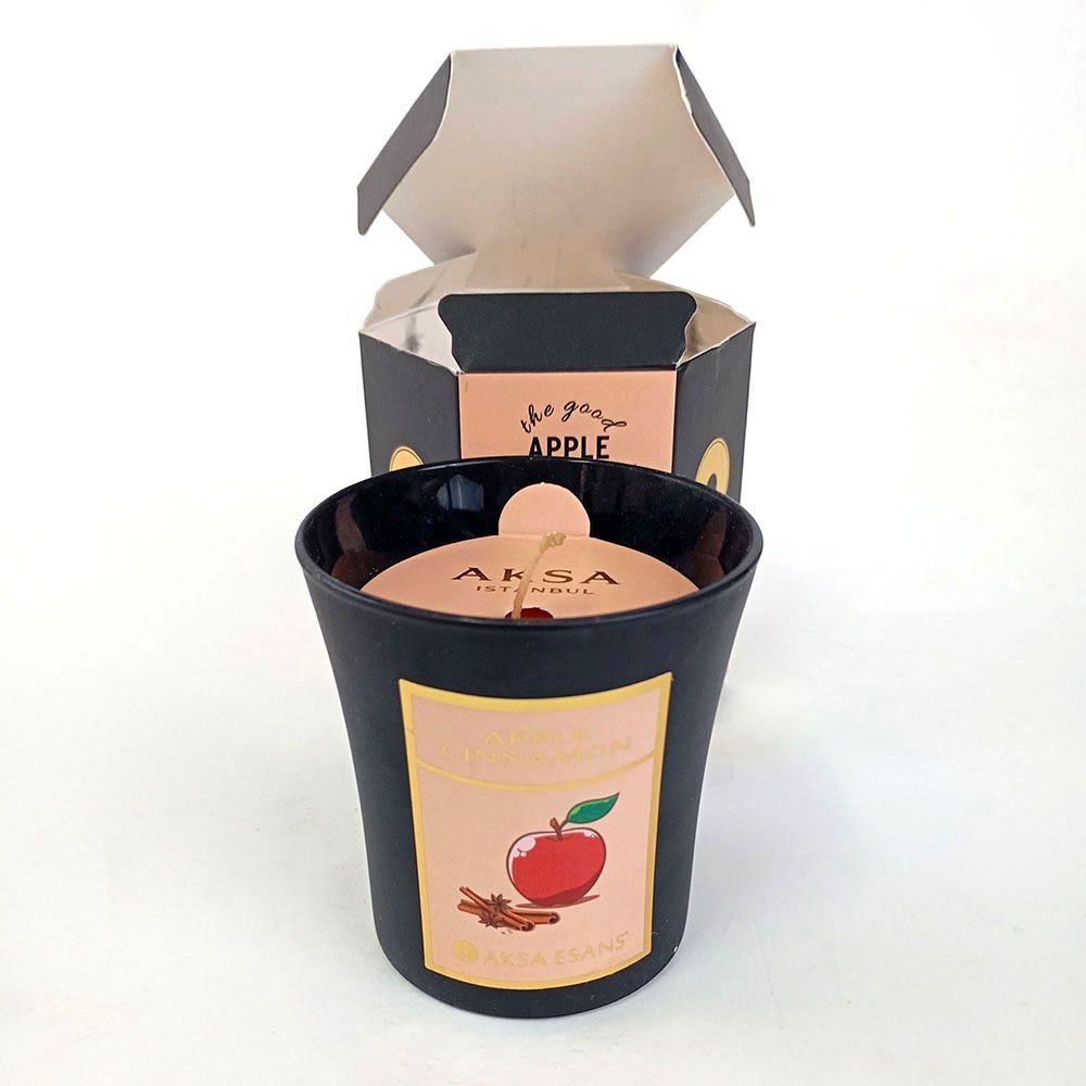 Ароматическая свеча Яблоко Корица Акса Эсанс (Apple Cinnamon Candle Aksa Esans) - это сочетание ароматов улучшает настроение, повышает общий жизненный тонус, дарит уют, романтическую атмосферу и помогает провести незабываемые минуты в кругу любимых и близких. Ароматическая свеча Яблоко Корица Акса Эсанс: корица с глубокой древности известна как средство, тонизирующее, активизирующее работу головного мозга, повышающее работоспособность, очищающее и дезинфицирующее помещение. Яблоко дарит позитивный настрой и свежие идеи.