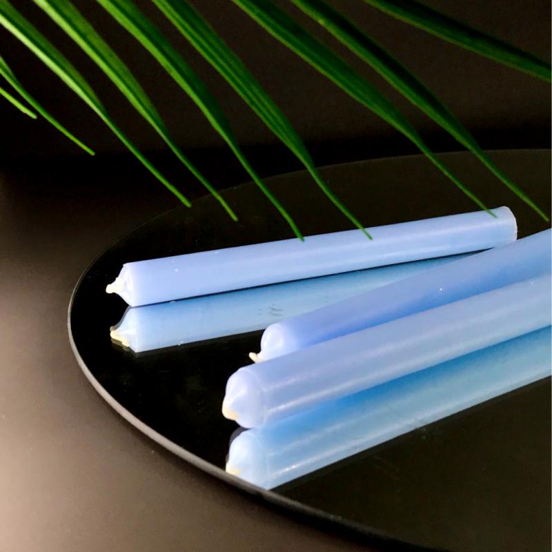Магическая голубая свеча: гармония, терпение и равновесие. Её длина составляет 20 см, вес - 60 г, а время горения - около 6 часов.