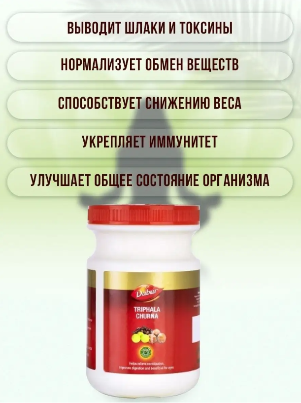 Аюрведический препарат Трифала Чурна в порошке применяют для профилактики и лечения люди всех возрастов! Трифала Чурна чистит кровь, лечит нервную систему и бессонницу, нормализует зрение, увеличивает половую активной, регулирует давление, нормализует желудочно-кишечный тракт, улучшает память, ускоряет процесс сращивания сломанных костей, лечит кожные заболевания.