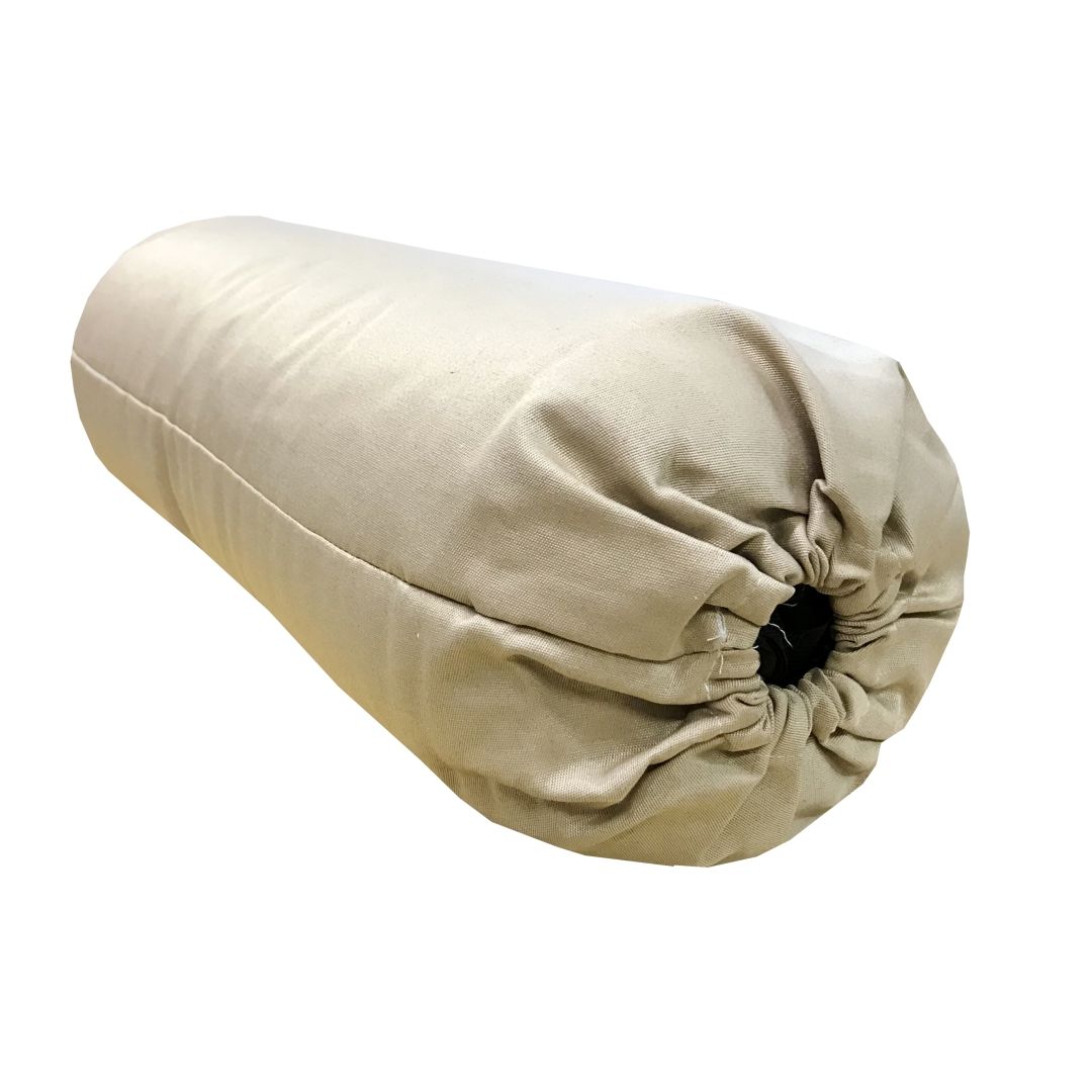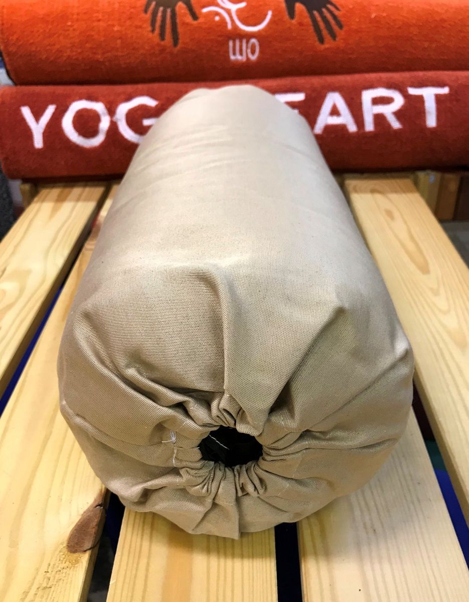 Миниатюрный валик из гречихи станет прекрасным аналогом болстера для йоги, так как имеет приемлемые для повседневного использования размеры: длину 41см и диаметр 15см