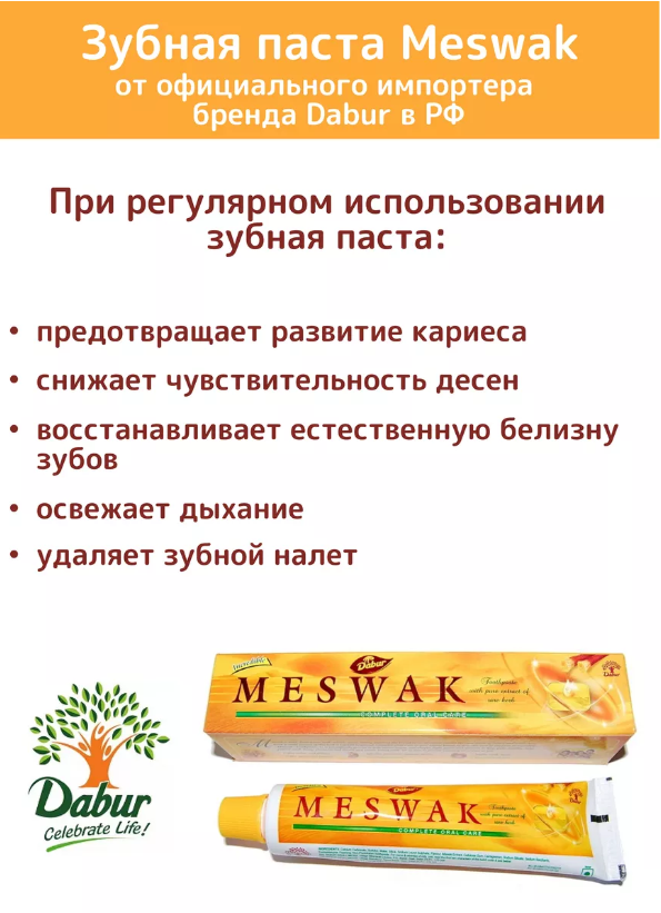 Зубная паста без фтора от фирмы «Dabur» мягко очищает поверхность зубов от зубного налета и различных бактерий, оказывает легкий массажный эффект десен. Зубная паста, изготовленная по аюрведической формуле на основе трав, устраняет кариес, защищает десны и зубы от различных болезней, оставляет приятный запах во рту, имеет сладкий вкус аниса.